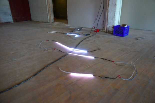 Este es un buen momento para probar cosas, antes de que usted realmente poner nada en las tripas de una nube. Con el Arduino desconectado de su ordenador, conecte el circuito al adaptador de CA. Todas las luces de la franja deben encender en orden, entonces todos apagar a la vez. Entonces, usted debe poder presionar el control remoto y cosas deben flash! El botón 'A' al azar debe hacer uno o dos segmentos de la nube de fuego, 'B' debe hacer fuego hasta 4, y 'A' y 'B' juntos deben hacer que todo flash.