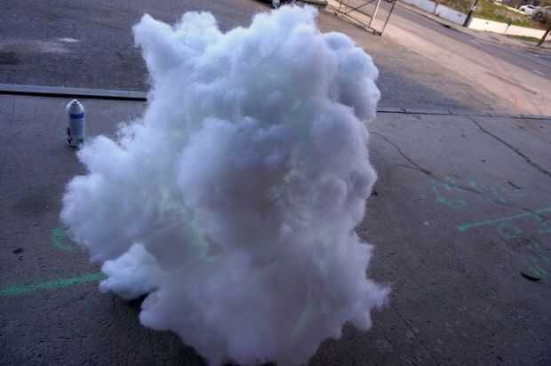 Una vez que tienes una forma que parece un poco más natural, empezaremos añadiendo el polyfill! Haciendo una sección a la vez, rocíe la caja + globos con el pegamento del aerosol y luego triturar un trozo de poliéster relleno del adhesivo, presionando y exprimir para obtener un buen palo.