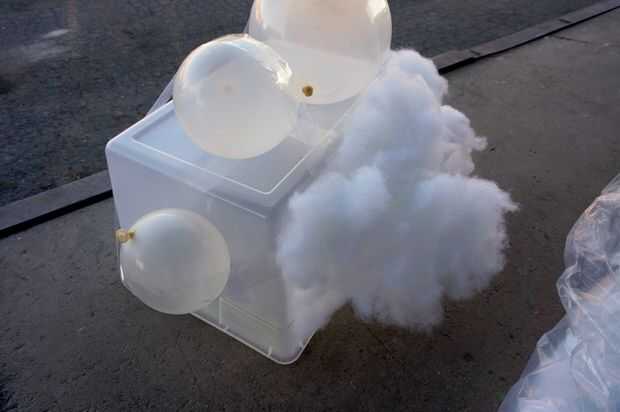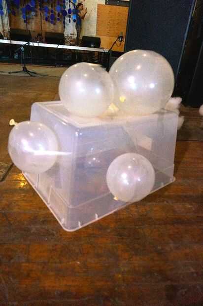 En primer lugar, vamos a hacer nuestras cajas menos cuadrado. Tomar unos globos, llenarlos parcialmente con aire, luego con cinta adhesiva a su caja de almacenamiento de información.