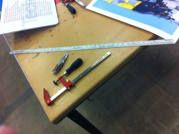 Hardware: Abrazaderas, borde recto (regla), cortador de la caja