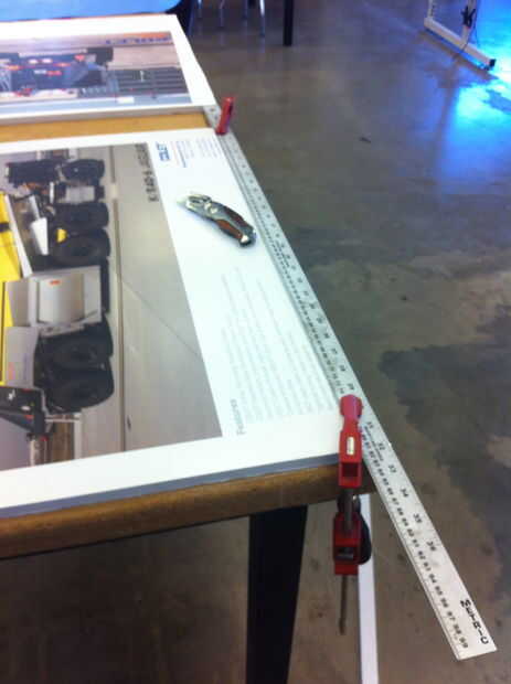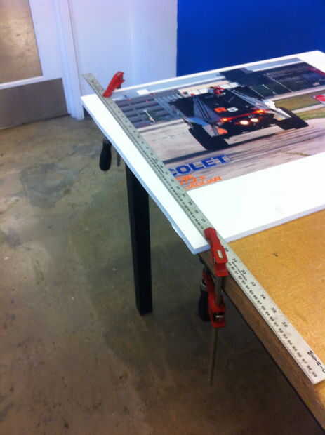 Usando las abrazaderas, borde recto y corte de caja ajustado hacia abajo de las tablas para los carteles.