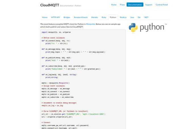 Ahora después de preparar y probar todo y seguro que todo funciona bien, la base, el corredor "CloudMQTT" y mosquitto, vamos a tratar de este programa de python muestra la documentación CloudMQTT.