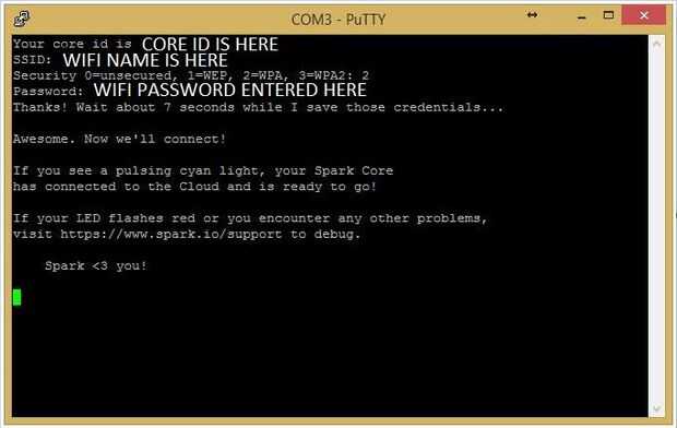 Si el LED parpadea en rojo o tiene algún otro problema, visite https://www.spark.io/support para depurar.