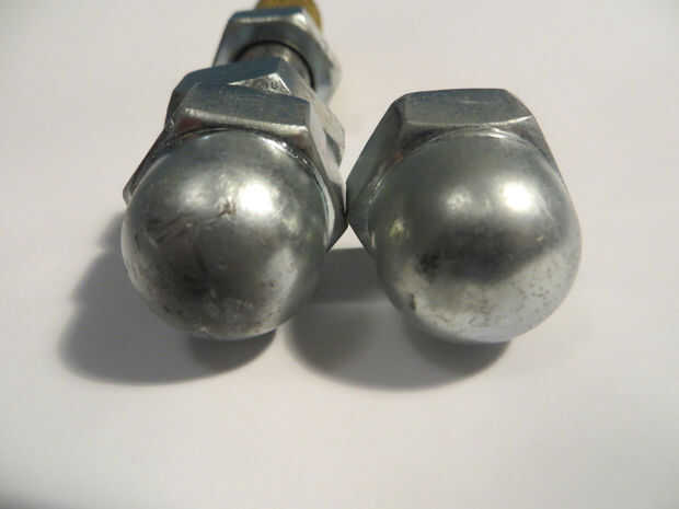 Mi variedad fue galvanizado pero no es la mejor opción. Lo mejor sería acero inoxidable ya que es más difícil y no tiene ningún recubrimiento que puede salir como el zinc en mi caso. En la segunda foto pueden ver la diferencia sutil de la tuerca de la izquierda que he utilizado y uno a la derecha que se desgastan menos.