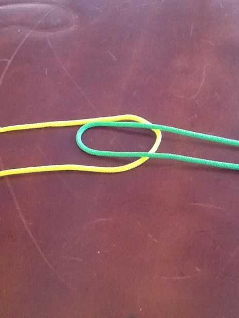 este es un nudo que unen 2 cadenas.Paso 1: Reunir las 2 cadenasPaso 2: Paso 1 Doble cadena 1 en sí mismo para crear un buclePaso 3: Paso 2 Ponga el extremo de la cadena 2 a través de la mirada va debajo sobre tan thatString 2 viene a descansar más al