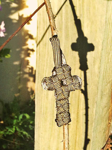 Se me ocurrió esta idea fuera de Stormdrane instructable Cruz nudo paracord lanyard, hay una cruz con el mismo nudo que parece que corrió otro pedacito del cordón por debajo de la vertical de su cruz para crear los miembros horizontales.Quería hacer