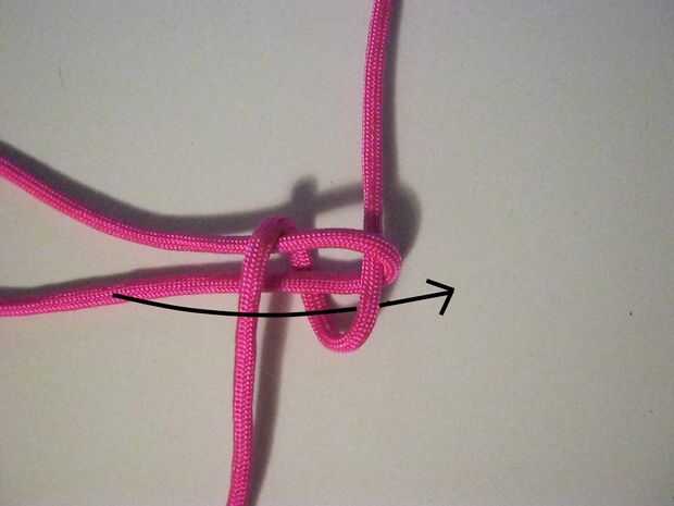 y ahora toma el otro lado (a la izquierda en este caso) y cruzarlo sobre el primero y en el segundo, por lo que se detecta en el otro lazo pequeño.