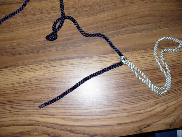 notar que la cuerda desliza fácilmente, pero parece un nudo cuadrado, bueno para la magia
