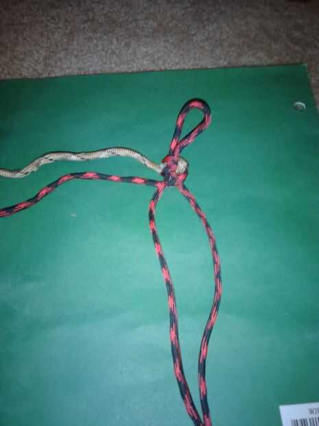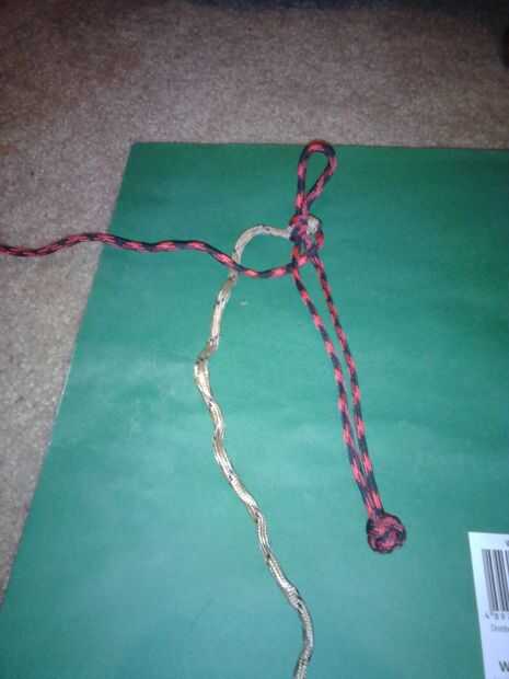 necesita aproximadamente diez pies de paracordPaso 1: Tomar un extremo de la paracord y poner la hebilla luego tome el extremo y tire hacia abajo en forma de bucle y tire los dos hilos a través del lazo y tire firmementePaso 2: tejer El comienzo de l