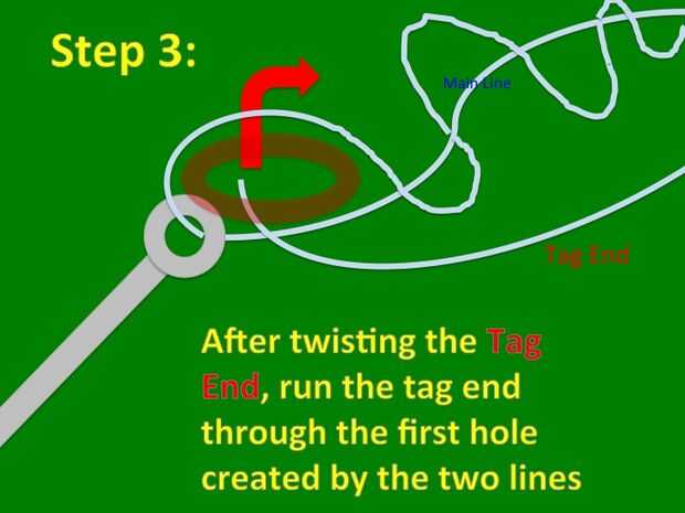 Nudo de pesca: Cómo hacer nudo de remache mejorado (3 / 6 paso)