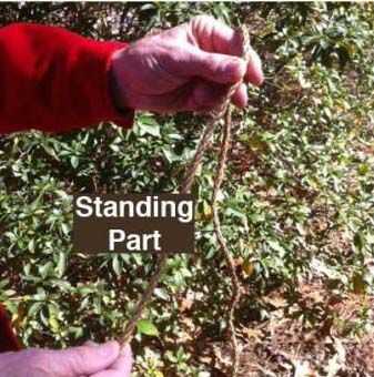 (Para Aparejos de cuerda, atar el nudo de mariposa cerca del Punto de anclaje, dejando suficiente espacio para aplicar tensión a la línea y reservar espacio suficiente para amarrar el aparejo de la cuerda.)