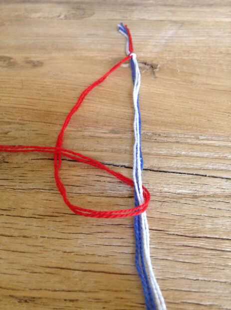 Elige tu color base. Luego realizar un cuatro en las otras dos. Tire firmemente y a repetir.