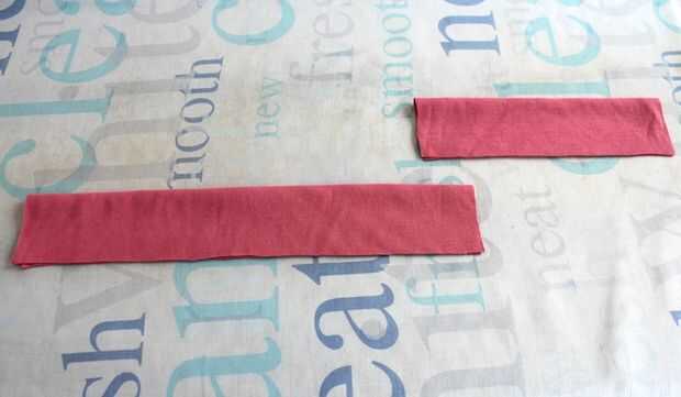 Lazo toma las 2 piezas (que son de distintos tamaños) doblan en mitad a lo largo y hierro mal lado hacia fuera. Luego coser un lado corto y lado largo abierto. Corte las esquinas en ángulo para que se plancha plana cuando le da la vuelta derecha hacia fuera. Voltear a los lados derecho de lazos hacia fuera entonces hierro plano.
