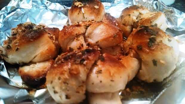 Una vez nudos oro marrón retirar del horno, coloque papel de aluminio y plegar los bordes como un recipiente temporal. Vierta la mezcla de mantequilla en ellos y ponerlos nuevamente en el horno a 300F durante unos 5 minutos. Esto es solo para remojar la mantequilla realmente NOM. de pulg.