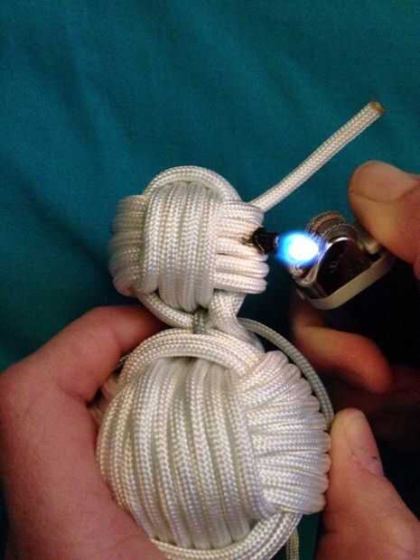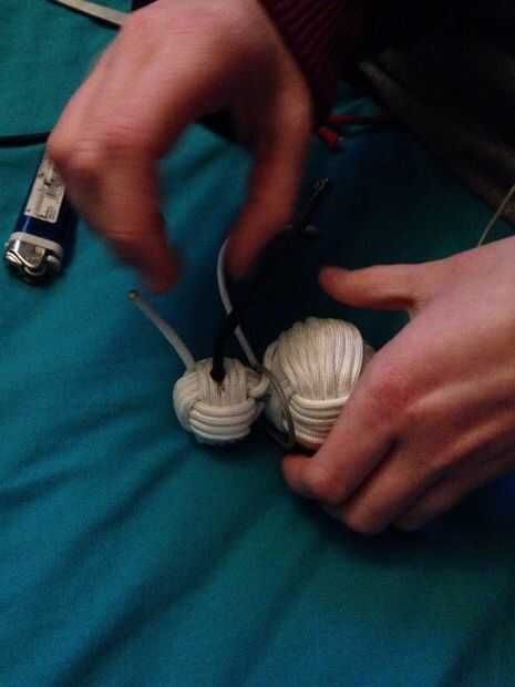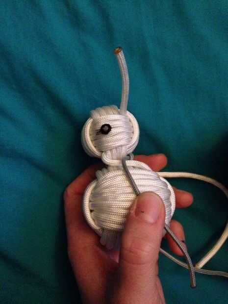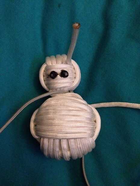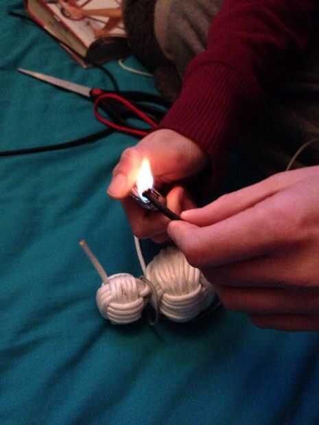 Para hacer los ojos, agarrar el paracord negro cortado al final. Ahora grabar el final y pegarla donde quieras ojo del muñeco de nieve. Después de se pega al puño de mono, cortar el resto de la paracord, dejando aproximadamente 1/4 de pulgada para el ojo. Quemar el extremo del cable y color con sharpie negro cuando haya enfriado.