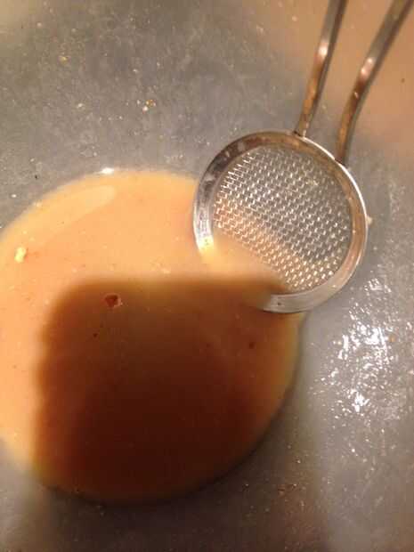 Combinar los ingredientes húmedos: leche de almendras, whisky, vainilla, miel.