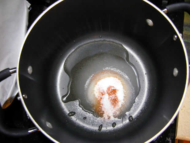 Añadir el azúcar, el agua, la sal y la pimienta de Cayena en la cacerola pesada. Encender la estufa. Revuelva sobre fuego medio hasta que el azúcar se disuelva. Hervir, sin revolver, durante 2 minutos. Apagar el fuego y añadir las nueces (temperatura ambiente) a este almíbar, revolviendo durante 1 minuto hasta que las nueces están constantemente cubiertas con el almíbar. Transferencia de pecanas a la hoja de galleta alineada, separarse y separa tan uniformemente como sea posible. Trabajar con rapidez. Coloque en el horno que cuece al horno, ajuste el temporizador durante 10 minutos.