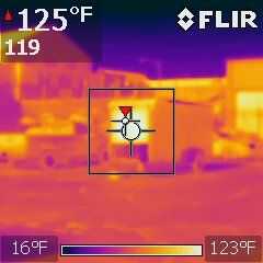 Fue la primera actividad para prepararnos a hacer un colector solar ver algunos de los últimos recolectores. Miró a ambos lados y miraba con una cámara térmica. El mejor de los colectores solares fue bombeando aire de 95 grados, y lo peor fue a 80 grados; Estos eran pequeños éxitos en tiempo de 75 grados en el sol de pleno verano durante 3 horas. Un soporte de madera al lado de los colectores alcanza 115 grados, y un trailer negro estacionado cerca estaba en una ampollas 125 grados.