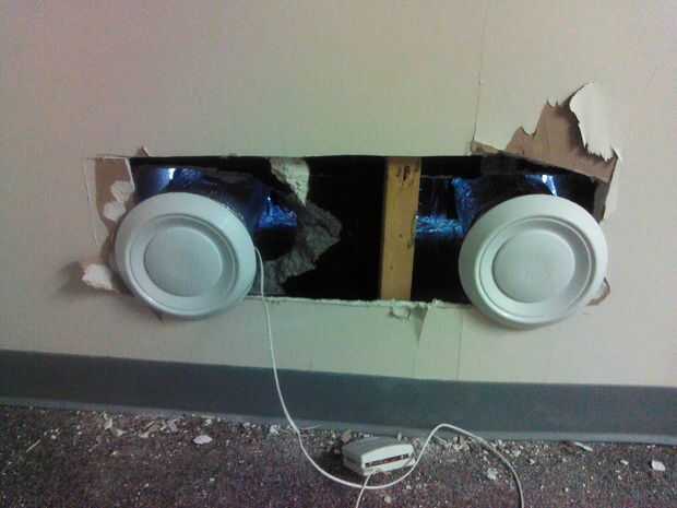 Tomamos el ventilador y el termostato nuevo a nuestro taller de soldadura de los cables para que el panel de "apagado" si la sala interior consiguió demasiado caliente. Después de probar el sistema con una C.C. fuente de alimentación, nos dirigimos hacia el lugar de instalación. Con las bridas de plástico y acolchado de la espuma que viene con el panel, atamos los tubos extendidos a sus lugares apropiados en la parte posterior del panel. Finalmente, nos entregó el proyecto nuevamente al equipo de construcción para parchear el agujero en la pared y coloque el termostato en la pared.