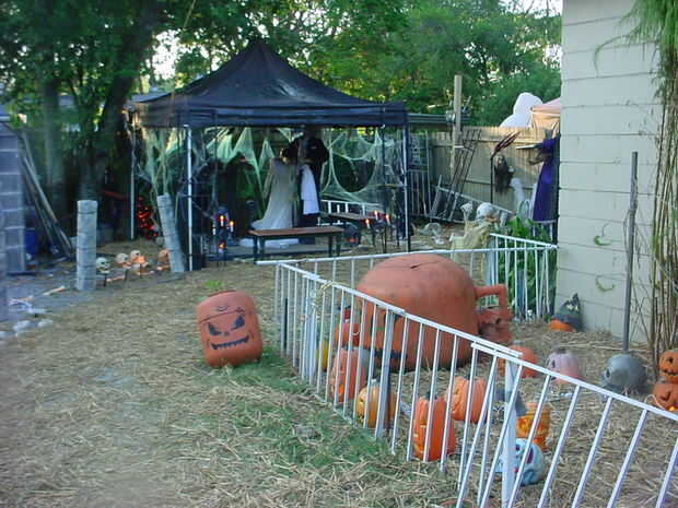 Pasado el demonio rising de la piscina es el cementerio, un proyector de dvd dispara una película b & w en el lado de la camioneta mientras su atención está en la película y tu pensando en tu bien seguro un espantapájaros de 6'8 salta de las calabazas. En el fondo es el zombie con novia boda (de es el año pasado para esta configuración)