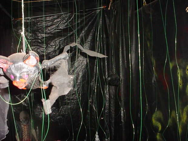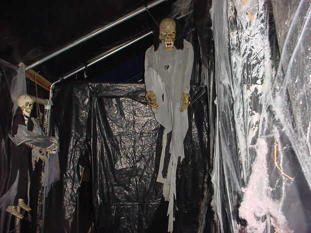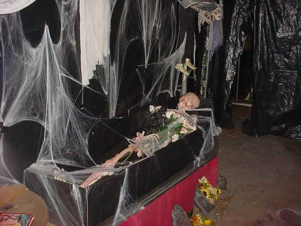 Una vez a través de la puerta del ataúd entras torcer pasillos llenos de demonios, skelatons y etc, escuchar el portazo detrás de ti ayuda a añadir al nivel de emoción, no voy a mostrar alguna fotos de los túneles oscuros, theres nada pero algunas cuerdas colgantes y gasa y pitch negro no fotografía con flash... una vez a través de la oscuridad del túnel su satisfecho pero un payaso 9 pies bajo una brillante luz estroboscópica