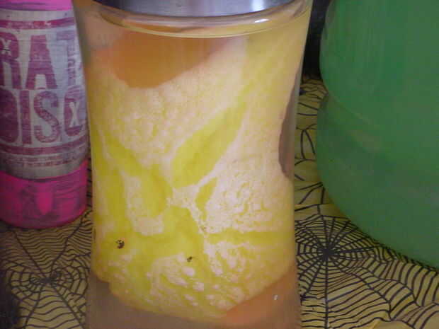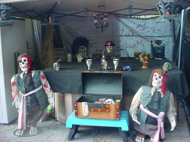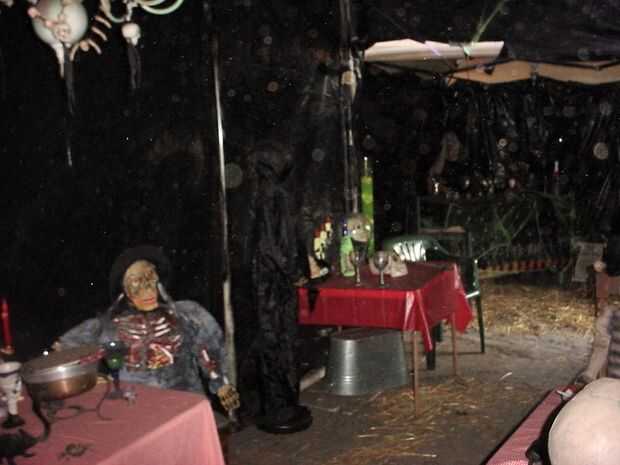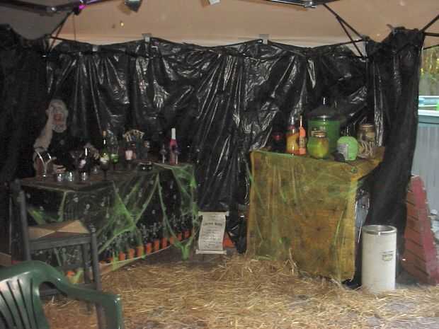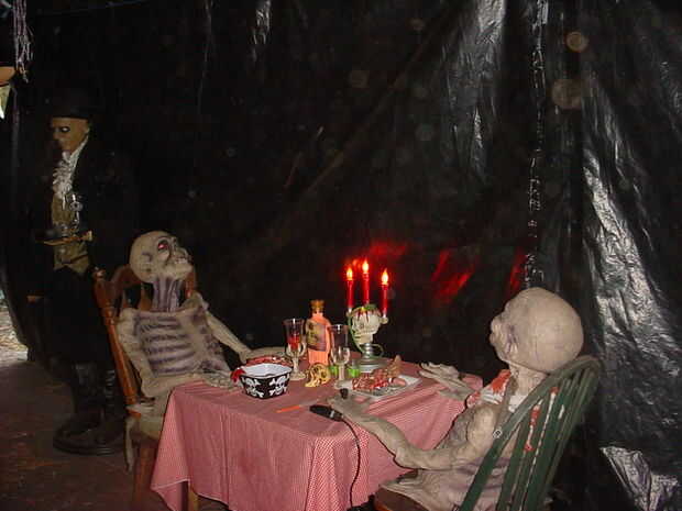 Esta sección siguiente se basa en flurescent y pintura de brillo, algunas mesas y sillas con ghouls y ajustes de lugar hacen el diener, la gran jarra de jugo zombie se realiza mediante 3 resaltadores amarillo y agua, un par de dólares almacenar juguetes que "crecen" en llenar con agua un par de contenedores y un escabeche punk inspirado en instructables se llenan la "barra". A las afueras de la guarida está el cotarro Buccanners