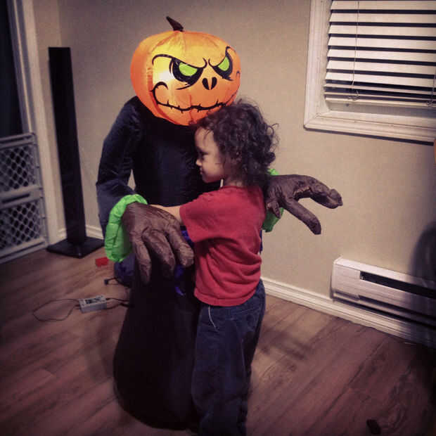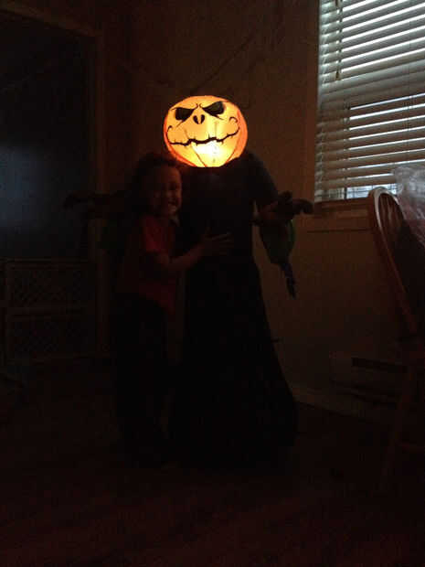 Y colocamos un golpe arriba rey calabaza en la esquina de nuestro porche que los niños tomaron foto con así :)