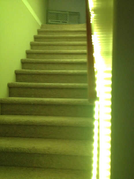 Luces de la araña para nuestras escaleras, cambia de color y los niños les encantó cada vez que sonaron el timbre y nos abrió la puerta igual que las escaleras justo en frente de nuestra puerta de entrada.