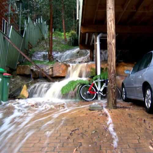 Un par de años después de llegar aunque tuvimos un poco de un choque en la forma de una gran lluvia que llegó a través de la región y convertido nuestro patio hermoso arbustal natural en un torrente furioso a través del cual el escurrimiento de lluvia para toda la colina fluía a un ritmo alarmante. Divertido cómo el agente de bienes raíces descuidó mencionar que como una característica.