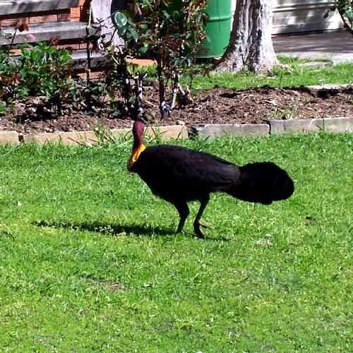 Pavos salvajes son originarios de nuestra zona y son una especie protegida. De hecho hay un nido enorme dos casas arriba de la nuestra. Los pavos tienden a venir rascarse alrededor en la mañana y noche. Significa que no tenemos problemas con jardín plagas como babosas y caracoles, pero también significa que cualquier plántulas que en su camino se rayen o picoteó hacia fuera así.