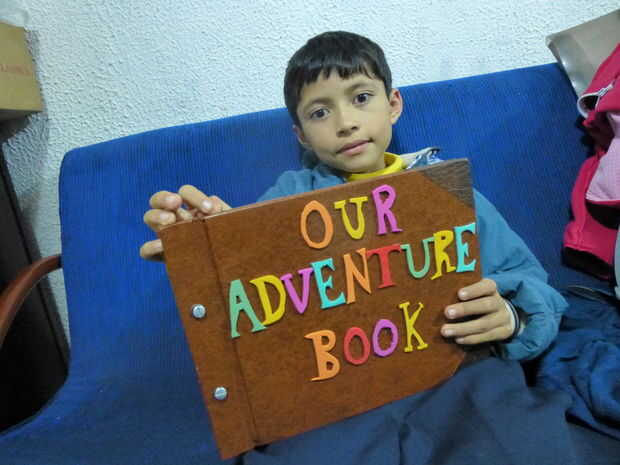 "UP" es una de las mejores películas hemos visto en familia. Es muy divertida y los personajes se parecen mucho a padres de mis. Por eso pedí ayuda a mi hermana mayor para hacer una especie de homenaje a la vez guardamos nuestras fotos familiares. No. mis padres siempre han enseñado a darles un segundo uso a algunas cosas.