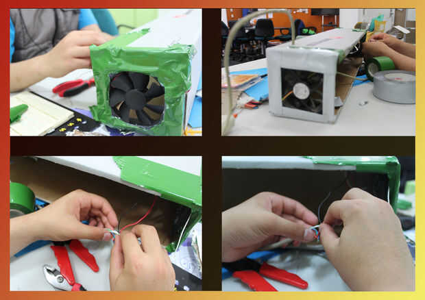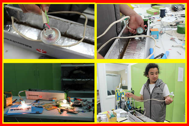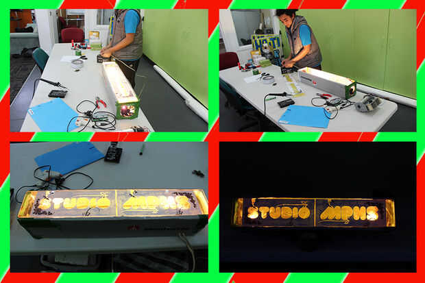 A continuación hemos cableado los bulbos y y grabado en la parte inferior de la caja, asegurándose de que los puntos donde ellos cableado está conectados no toquen cualquier área dentro de la caja.