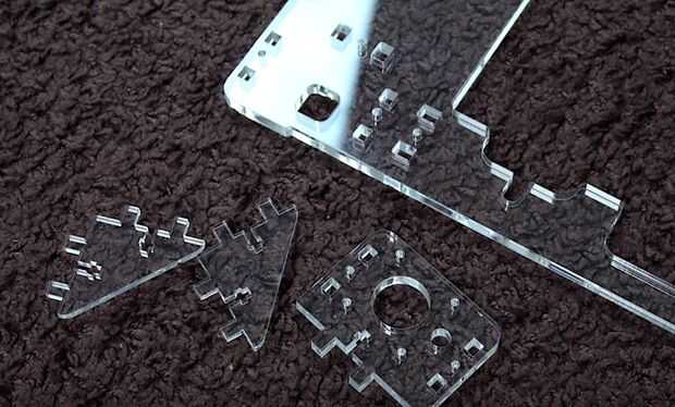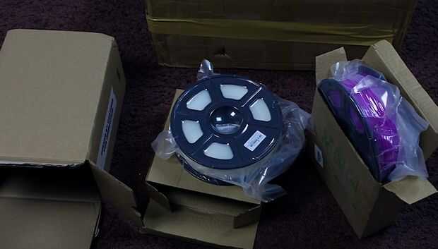 Llegó en una gran caja y pesa más de 10 kilos. También trajo a algunos amigos con él - una pareja carretes o de plástico, seguramente que muchos de ustedes saben que el plástico ABS es considerado uno de los tipos más durables de plástico y es ampliamente utilizado en la producción industrial si pensamos que la caja sí mismo es bastante grande, también consta de tres niveles. El primer nivel contiene motores de escalonada, pares torcidos, fuente de alimentación y diferentes circuitos. El segundo nivel contiene partes de vidrio orgánico - la base, en el tercer nivel vemos un montón de correas y tornillos, pernos y por supuesto un montón de cables.