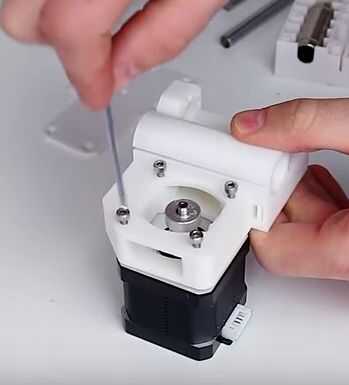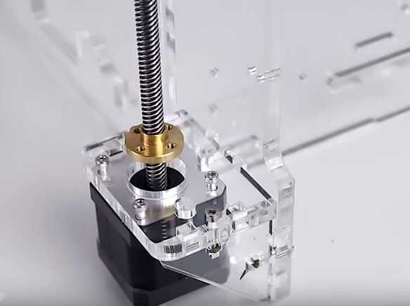 Ahora tenemos que atornillar el soporte superior del motor escalonado. Por cierto, esta pieza de plástico también fue hecho en una impresora 3D.