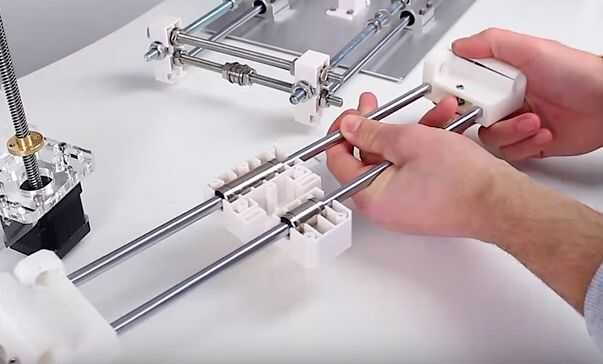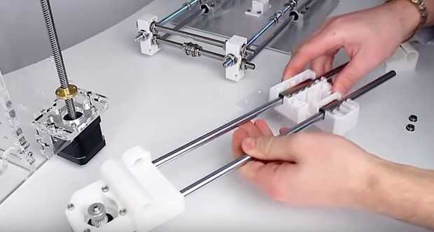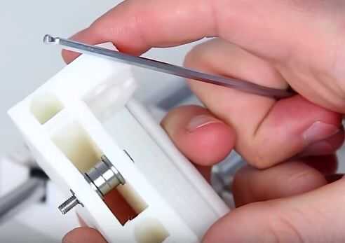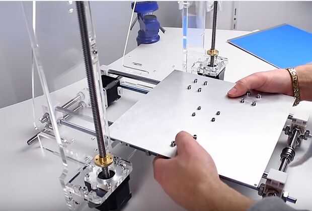 Ahora ponemos en dos cojinetes pequeños y luego apriételos será utilizado a cary la correa. La mitad del trabajo está casi listo. Ahora tomamos nuestro chasis y colocar en las ranuras, luego nos atornillar ocho tuercas, el chasiss de fijación en el lugar. No olvide utilizar las arandelas ya que puede quebrar el vidrio orgánico de demasiada presión desigual.