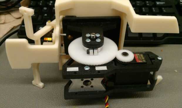 Tres 3D impreso piezas + 1 pequeño servo servo de 1 rollo de ServoCity + tornillos = base de la cabeza del robot