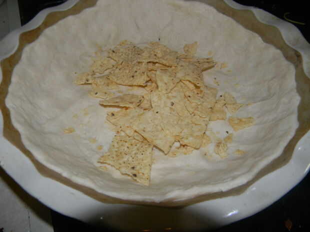 Superior de la corteza con chips de tortilla machacada (11)--para cubrir la parte inferior de la corteza.
