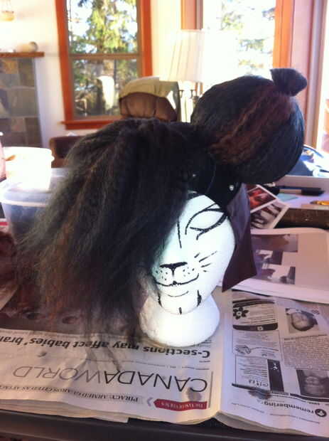 Mi nieta quería ser un León para halloween. Sabía lo que quería la melena para parecer, pero no estaba seguro de cómo hacerlo. Encontré un patrón gratuito en Web del León marca hilado para una peluca roja salvaje (http://www.lionbrand.com/patterns/60