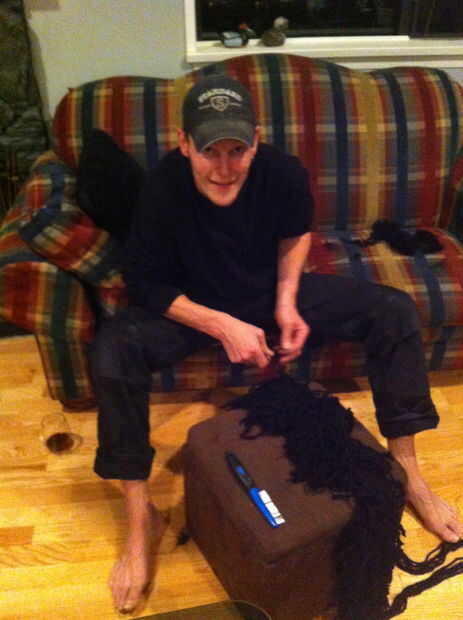 Mi nieta quería ser un León para halloween. Sabía lo que quería la melena para parecer, pero no estaba seguro de cómo hacerlo. Encontré un patrón gratuito en Web del León marca hilado para una peluca roja salvaje (http://www.lionbrand.com/patterns/60