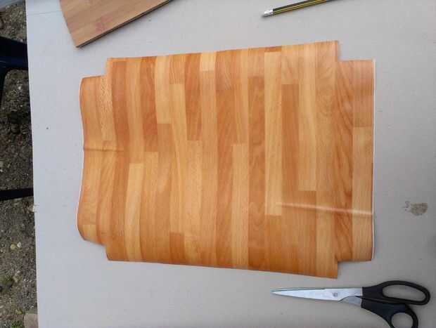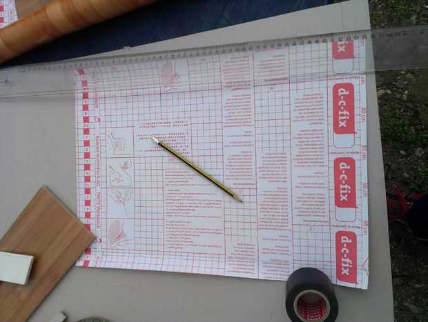 Corte la lámina autoadhesiva para adaptarse a la plataforma. El resto de la hoja me cutted en rayas (para los pies de la plataforma). Esta hoja tenía una rejilla en la parte trasera, es más fácil cortar :)