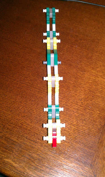 Construir 2 'serpientes' y ponerlos junto con barras blancas. No te olvides de incluir entre los conectores de manera gris 1!