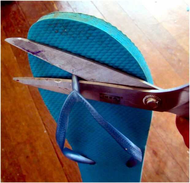 Resbalón de bricolaje en sandalias de zapatos viejos