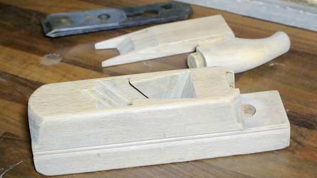 El mango fue bastante flojo y salió fácilmente cuando tiró en él. En un ajuste más apretado habría utilizado pegamento de madera pero requiere epoxi para rellenar los huecos aquí y conseguir la manija montada firmemente otra vez. Una pinza que no apretaron demasiado mucho lugar en lugar para secar hasta el día siguiente. En general el más estrecho la boca de un avión es el trabajo más fino que puede hacer con él. Éste tampoco se amplió a más de un centímetro (1/2") no muy áspero trabajo o abierto a ajustar la planta del pie muchas muchas veces. Una opción era arreglarlo con un parche pero como la única existente era bonita mucho desgastado decidió dar el plano uno nuevo.