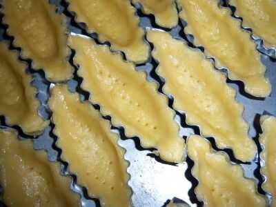Precalentar el horno a 180 grados. Sobre una superficie ligeramente enharinada, estirar cada disco de masa a un grosor de 1/4 de pulgada. Cortar círculos con un cortador redondo de 4 pulgadas. Ajuste cada círculo en el molde de Tartaleta la masa y ponerlo sobre las pequeñas cacerolas tartas individuales. Presione gentely la masa de cada molde para cubrir la forma.