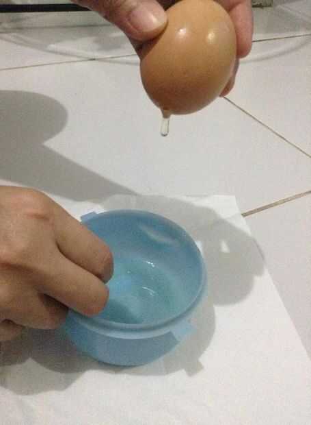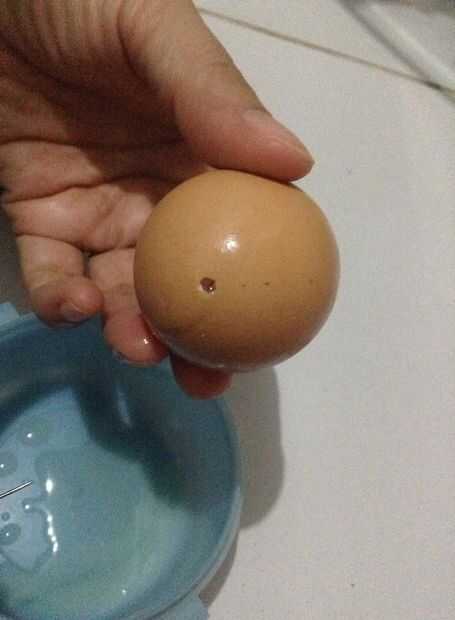 Debe ser cuidadosamente perforar el huevo con una aguja porque el huevo es muy fácil de frágil. Después, vierta el contenido del huevo en un tazón pequeño. Para hacer más fácil, puede soplar el huevo, por lo que el contenido del huevo puede salir más fácil.