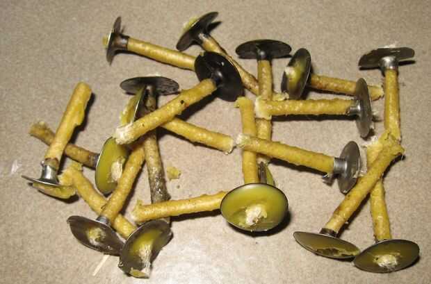 Una vez que enfríen, cortarlas y voila - tus mechas de vela están listos! Colocarlos en el centro de las tazas de té.