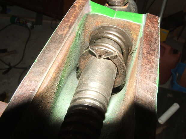 Cuando la capa final es seco y duro (esta a la izquierda por una semana y volvió a él el próximo fin de semana.) Retire la cinta adhesiva, limpiar las partes que faltaron antes y volver a montar. Usé un nuevo pasador de tornillo y los pernos nuevos en las mandíbulas. Un aceite ligero en las piezas móviles no perderse tampoco.