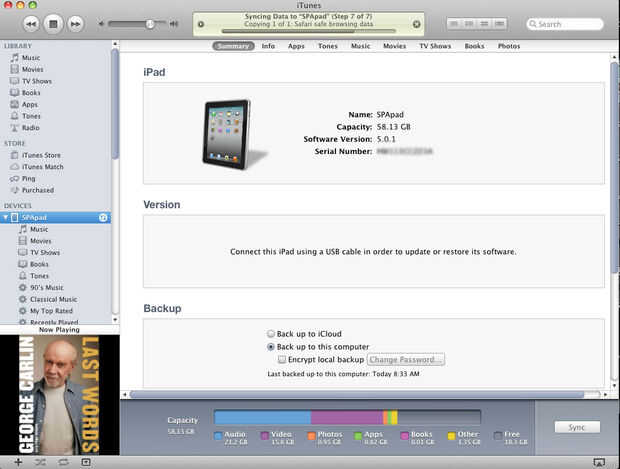 Estoy usando sincronización inalámbrica, por lo que puedo añadir música / películas / actualizaciones