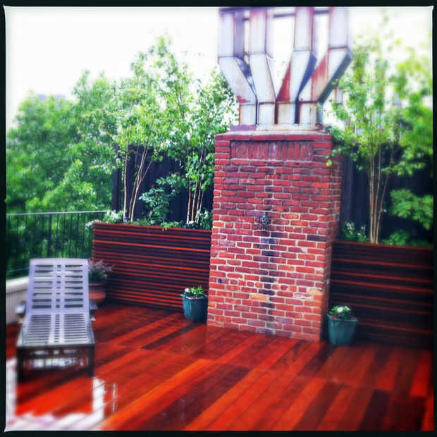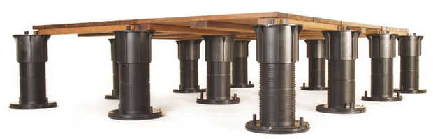 Esta cubierta fue instalada mediante un sistema de pedestal que ayuda a mantener el nivel superficial de la cubierta entera, permitiendo que el agua fluya debajo de ellos y hacer su camino hacia el drenaje. Este tipo de sistema es esencial para los jardines en la azotea, que deben mantenerse libres de obstrucciones. También fácil acceso al desagüe para la limpieza y permite que las secciones de la cubierta que se tomará para la limpieza y mantenimiento al techo cuando sea necesario.
