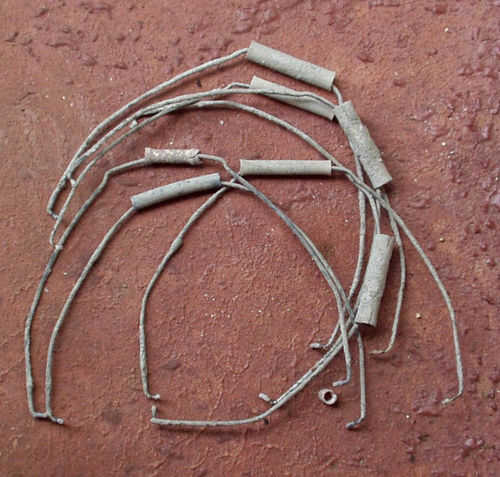 El alambre es elástico. Para quitar con fuerza el alambre necesita agarrar lo que pueda del alambre en la primera curva con un par de pinzas y el alambre de un giro. Que le permite deslizar el extremo del alambre atrás en el agujero.